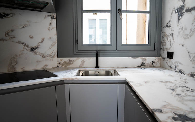 Manque de place rime souvent avec compromis en matière d'aménagement intérieur. La maison Warton n'accepte pas de sacrifier la qualité et propose des solutions innovantes pour pallier au manque d'espace. Cette réalisation est une parfaite illustration. Nous avons posé un mitigeur retractable dans une cuisine afin de ne pas bloquer l'ouverture de la fenêtre.